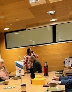 Noen punkter fra foredraget: Distriktet skal være en motivator og et serviceorgan for klubbene. DGen har en tilsynsrolle ved å besøke og ellers ha kntakt med klubbene.
