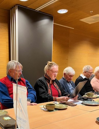 Presidenten ønsket velkommen. Kjell-Erik fikk ordet først og fortalte om fallet han hadde hatt hjemme. Han husket ingen ting, ble liggende på gulvet over natta og kunne i røre seg med vond rygg. Ble kjørt på sykehus dagen etter. Fant ut at han hadde korte hjertestopp og har fått operert inn pacemaker. Kona er blitt omplassert på sykehjem.